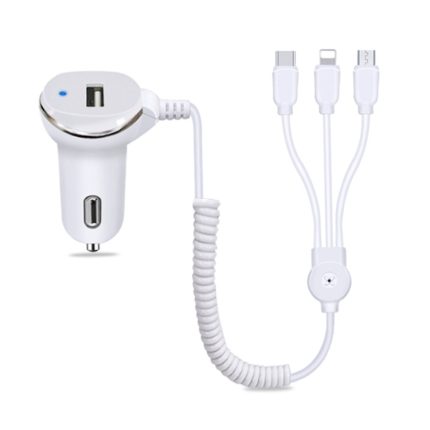 WK WP-C24 3.1A Entdecken Sie das 3-in-1 Free Edition 8-Pin/Micro-USB/USB-C/Typ-C-Datenkabel + USB-Autoladegerät, WP-C24