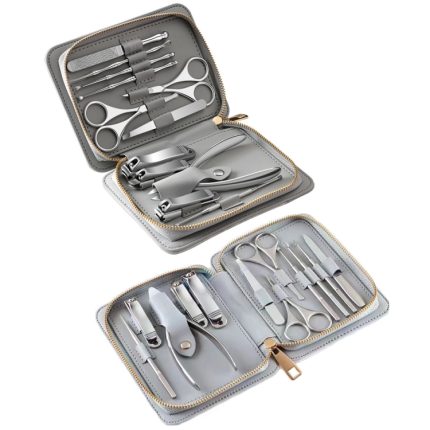 12-in-1 Nageltrimm- und Polierwerkzeugset aus Edelstahl, Bamboo Section, Square Head