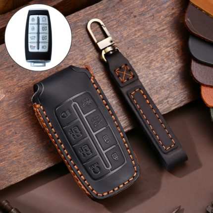 Hallmo Auto-Schlüsselhülle aus Rindsleder, Schlüsselhülle für Hyundai Rohens Genesis 8-Tasten, For Rohens Genesis