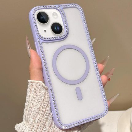 Large Lens Hole Rhinestone Frame MagSafe Phone Case, For iPhone 15 Pro Max, For iPhone 15 Pro, For iPhone 15 Plus, For iPhone 15