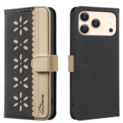 Splicing Color Hollow Flower Pattern RFID Leather Phone Case, For iPhone 17 Pro Max, For iPhone 17 Pro, For iPhone 17, For iPhone 17 Air