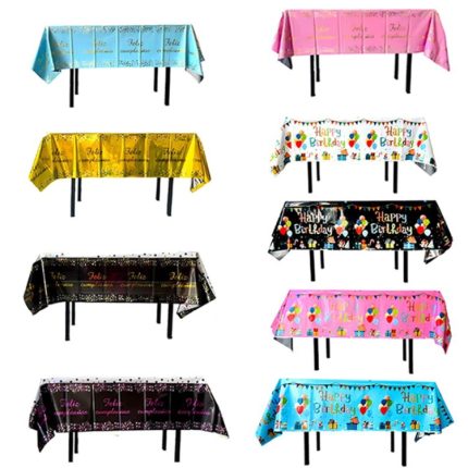137x183cm Happy Birthday PET Aluminiumfolie Tischdecken Einweg wasserdichte Party dekorative Tischdecke, English White Balloon, English Black Balloon, English Pink Balloon, Spanish Pink Star, Spanish Gold Star, Spanish Rose Star