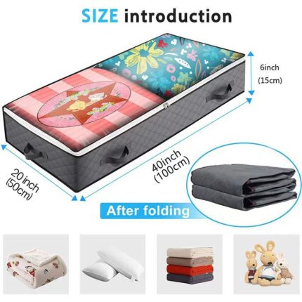 Faltbare Unterbett-Aufbewahrungstasche aus Vliesstoff für Kleidung, Decken und Schuhe, 100 x 50 x 15 cm, 100x50x15cm(4 Handles Deep Gray), 100x50x15cm(4 Handles Black)