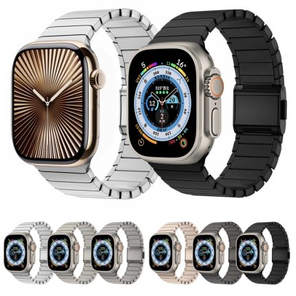 Uhrenarmband aus Edelstahl mit Normannen-Schnalle und Bambus, For Apple Watch 46mm / 49mm / 45mm / 44mm, For Apple Watch 42mm / 41mm / 40mm / 38mm