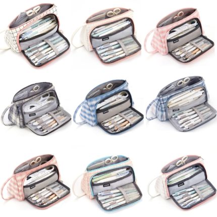 Angoo Federmäppchen mit großem Fassungsvermögen, niedliche Schreibwarentasche aus Segeltuch, Black White In The Palm, Fairy Plaid, Pink, Ink, Moon White, Qingtian, Begonia, Scottish Plaid, Gentle Breeze, Daisy, Dawn, Cherry Pink, Blue Gray, Ink Paintin…