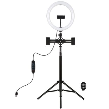 PULUZ 1,65 m Stativhalterung + Duale Telefonhalterungen + 10,2 Zoll 26 cm gebogene Oberfläche USB 3 Modi Dimmbarer Dual-Farbtemperatur-Ring Selfie-Vlogging-Videoleuchte Live-Übertragungs-Kits mit Telefonklemme und Selfie-Fernbedienung…