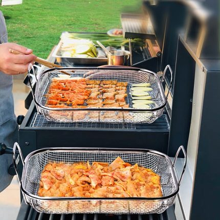 Quadratischer Grillkorb aus Edelstahl mit erhöhtem Griff, verbrühungshemmender Grillkorb, 42.5x28x10.5