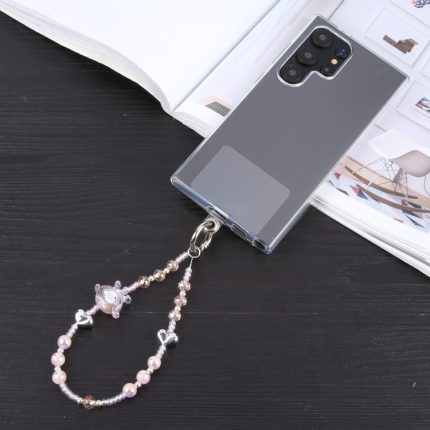 Kurzes Schlüsselband mit Perlenkette und Krone und Herz