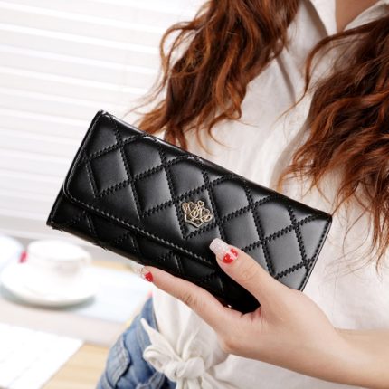 Modische Argyles-Textur, Metallkrone, 3-fach faltbar, langes Design, PU-Leder, Geldbörse für Damen