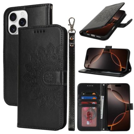 Double Fold Printed Embossing Leather Phone Case, For iPhone 16 Pro Max, For iPhone 16 Pro, For iPhone 16 Plus, For iPhone 16