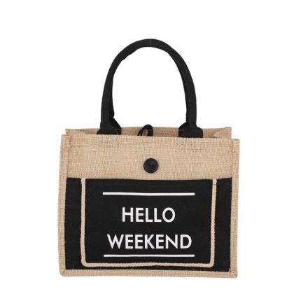 Tragbare Einkaufstasche, wasserdichte Lunchtasche aus Leinen, Black, White
