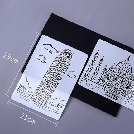 Bauserie-Gemäldevorlage Thema Stadt A4-Etikettenvorlage, Tower System (5pcs / Set), Sailing Line(5pcs / Set), 1 Paris Tower, 2 London Bridge, 3 Pisa Tower, 4 Big Ben, 5 Taj Mahal, 6 White House, 7 Castle, 8 Five-storied Pagoda, 9 Sydney, 10 Sailing Hotel