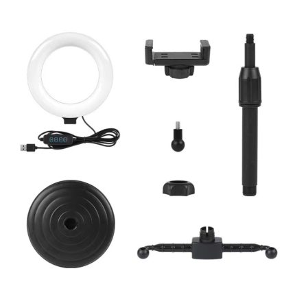 Runde Platte Desktop Handy Live Streaming Halter 6 Zoll Fülllicht Selfie Tragbarer Halter, Double-machine Position