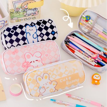 A22 Stifttasche mit großem Fassungsvermögen, niedlichem Cartoon-Muster, Aufbewahrungstasche für Schreibwaren, Black, Pink, Yellow, Blue