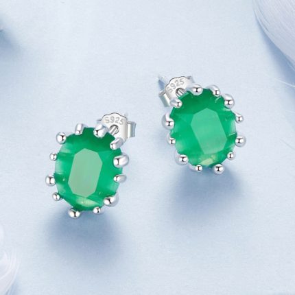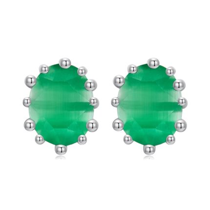 S925 Sterling Silber Smaragd Katzenauge Glas Ohrringe