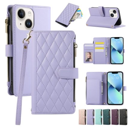 Rhombic Reißverschluss Brieftasche Leder Handyhülle, For iPhone 15 Pro Max, For iPhone 15 Pro, For iPhone 15 Plus, For iPhone 15