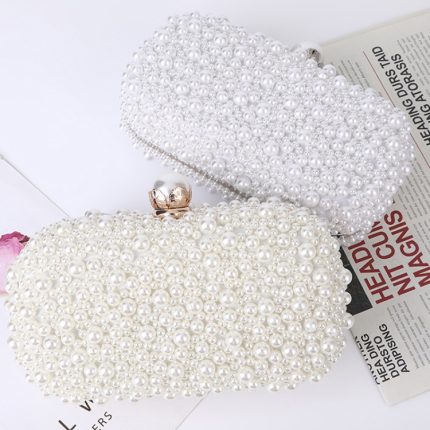 Perlen-Abendtasche, weiches Face-Lock, Damen-Umhängetasche, kleine quadratische Umhängetasche, White, Beige