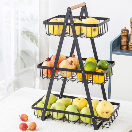 3-lagiger Handheld-Obstkorb, abnehmbarer Eisen-Wohnzimmer-Küchen-Brot-Snacks-Aufbewahrungskorb, Black, White, Gray