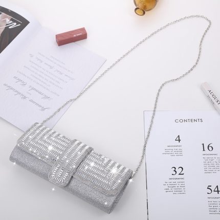 Damen Abendtasche Umhängetasche Handkuriertasche, Silver, Black