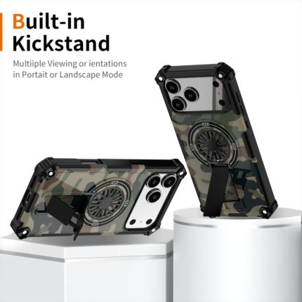 Camouflage Kickstand Rotating Shaft MagSafe Phone Case, For iPhone 16 Pro Max, For iPhone 16 Pro, For iPhone 16 Plus