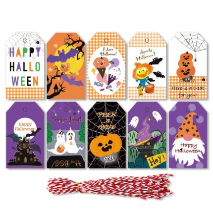 2 Sets Halloween-Hangtag-Geschenktüte, Süßigkeiten-Box, dekorativer Hangtag, Spezifikation:, 50 Hangtags+50pcs Cotton Rope, 50 Hangtags+50pcs Hemp Rope