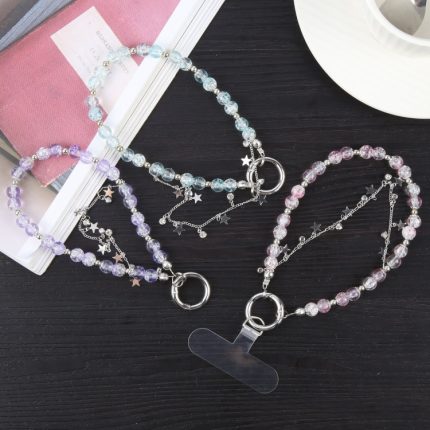 Handy Anti-Verlust-Kette mit kurzen Perlen in schillernder Farbe und Stern