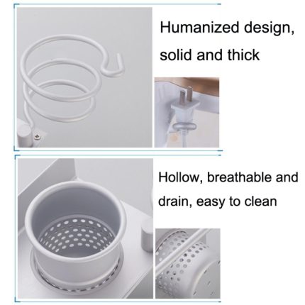 Goldener Haartrocknerhalter aus Space-Aluminium, With Barrel (Silver), With Barrel (Gold), With Double Barrel, With Toothbrush Holder
