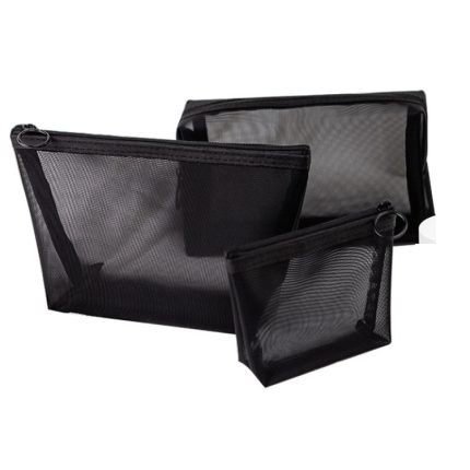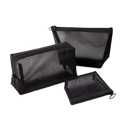 Schwarze, transparente Netz-Kosmetiktasche, dreiteilige Reise-Kosmetik-Aufbewahrungstasche mit großem Fassungsvermögen, Three-piece Storage Bag