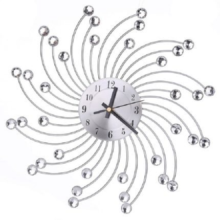Schmiedeeiserne Kristall-Wanduhr, stummgeschaltete Metall-Wanduhr für Wohnzimmer, Schlafzimmer, Crystal Wall Clock