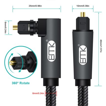 EMK 90 Grad drehbar, verstellbar, rechtwinklig, 360 Grad drehbar, Stecker, Nylongewebe, optisches Audiokabel, 1m(Black), 1.5m(Black), 2m(Black), 3m(Black), 5m(Black), 8m(Black), 10m(Black), 15m(Black), 20m(Black), 25m(Black), 30m(Black)