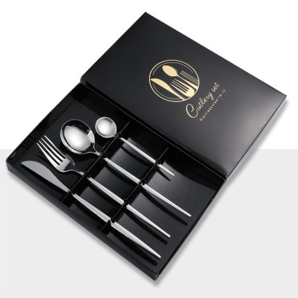 4 Stück/Packung Edelstahl-Besteck mit glänzendem Spiegel, Geschenkset, With Tea Spoon (Silver), With Tea Spoon (Titanium), With Tea Spoon (Black Golden), With Chopsticks (Silver), With Chopsticks (Titanium), With Chopsticks (Black Golden)