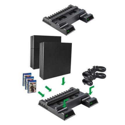 Für PS4 / PS4 Slim / PS4 Pro Lüfterständer Konsole Vertikalständerkühler mit Dual-Controller-Ladegerät, JL-P1908