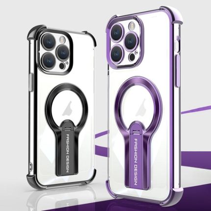 Shockproof Electroplating MagSafe Holder Phone Case, For iPhone 16 Pro Max, For iPhone 16 Pro, For iPhone 16 Plus, For iPhone 16, For iPhone 15 Pro Max, For iPhone 15 Pro