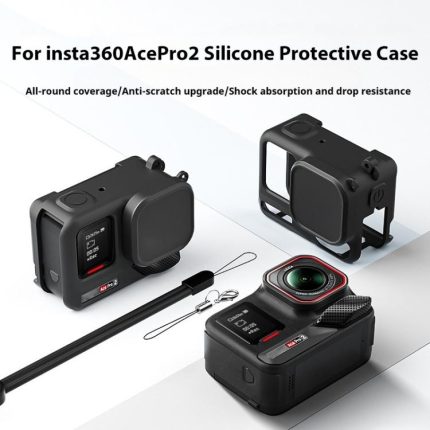For Insta360 Ace Pro 2 Silicone Protective Case with Wrist Strap & Lens Cover, For Insta360 Ace Pro 2