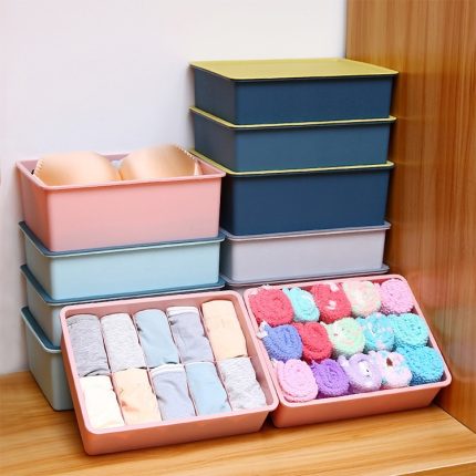 Kontrastfarbene Aufbewahrungsbox für Unterwäsche, Multi-Gate-Aufbewahrungsbox aus Kunststoff für BHs und Socken, 10 Grids with Cover