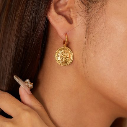 1 Paar einfache Ohrringe aus Edelstahl mit runder Plakette, vergoldet, Ohrstecker, Zubehör
