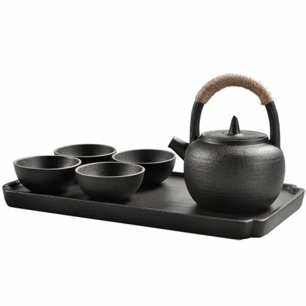 Tragbares Reise-Teekannen-Teetassen-Set aus Keramik mit Schlaufengriff und Teetablett, with Tea Tray (Black), with Tea Tray (White)