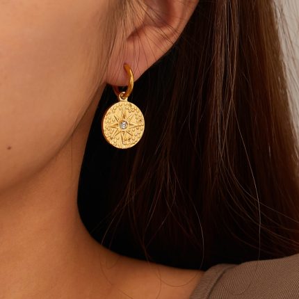 1 paar Einfache Edelstahl Runde Plaque Ohrringe Vintage Temperament Ohrringe