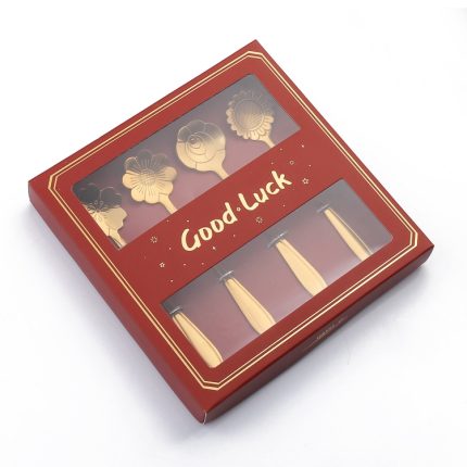 4-teiliges Besteckset mit Löffel und Gabel aus Edelstahl, Flower Spoon (Red Box), Flower Spoon (Green Box), Leaf Spoon Fork (Red Box), Leaf Spoon Fork (Green Box)
