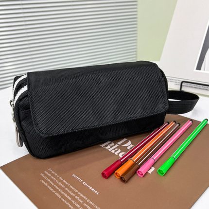 Mehrschichtiges Federmäppchen mit großem Fassungsvermögen, handgehaltene Briefpapierbox, Black