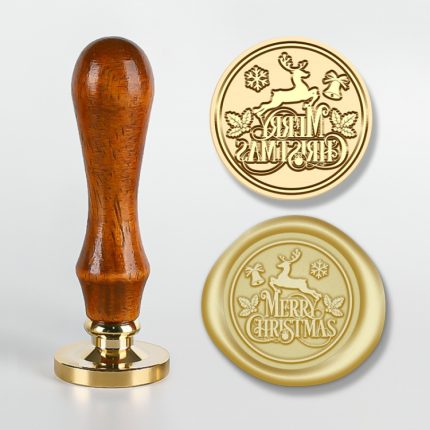 Feuerlack-Siegel der Weihnachtsserie mit Holzmaserungsgriff und Messing-Siegelkopf