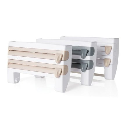 Wandmontierter Frischhaltefolienhalter für die Küche, Aufbewahrungsregal, Aufhänger, Schneidegerät, Größe: 39 x 10 x 24 cm, Grey, Khaki