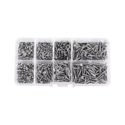 800pcs /Set Metric M2 Carbon Steel Phillips Self-Drilling Screw Kit, 800pcs /Set Round Head, 800pcs /Set Flat Head