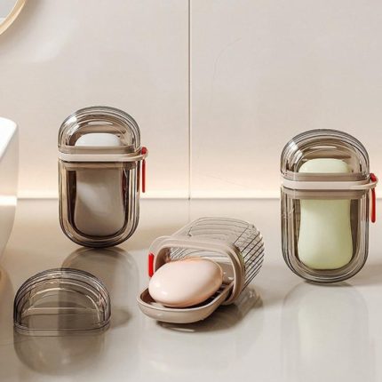 Tragbare, versiegelbare Seifenbox mit Deckel, doppelt entleerbare Reiseseifenbox
