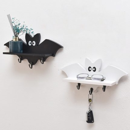 Aufbewahrungsregal in Cartoon-Fledermaus-Form aus Holz für die Wandmontage, Schlüsselhalter, 35x17cm