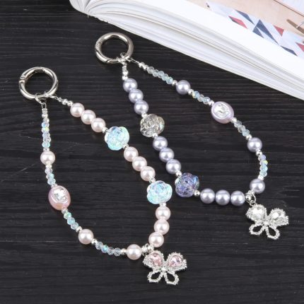 Handy Anti-Verlust Kristall Schmetterling Perlen Kurzes Schlüsselband