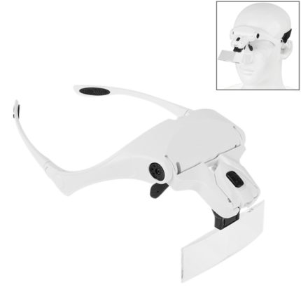 5 Linsen 1,0X-3,5X Lupenbrillenhalterung Stirnbandlupe mit 2 LED-Leuchten Augenvergrößerungsbrille Vergrößerungswerkzeug, 5 Lens 1.0X-3.5X (White)