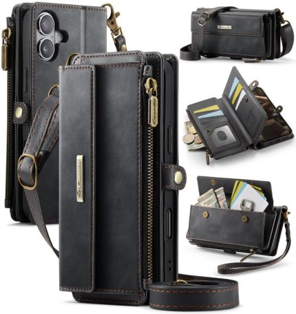 CaseMe C39 RFID Blocking Zipper Wallet Leather Phone Case with Crossbody Strap, For iPhone 16, For iPhone 15 Pro Max, For iPhone 15 Pro, For iPhone 15 Plus