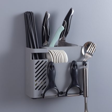 2 Stück Essstäbchenkorb, Wandmontage, Essstäbchenkäfig, Haushalt, multifunktionaler Löffel, Messerhalter, integrierte Aufbewahrungsbox