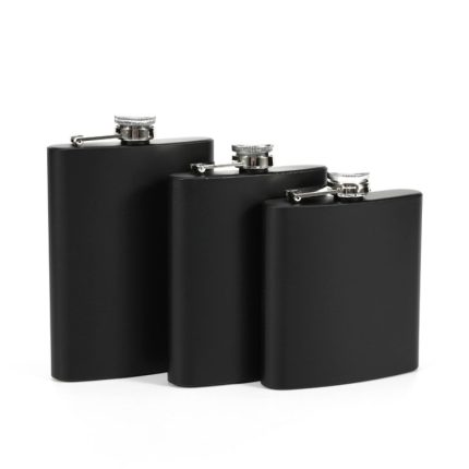 Flachmann aus Edelstahl 304, mattschwarz lackiert, für Whisky, Wodka, Wein, 6oz, 7oz, 8oz